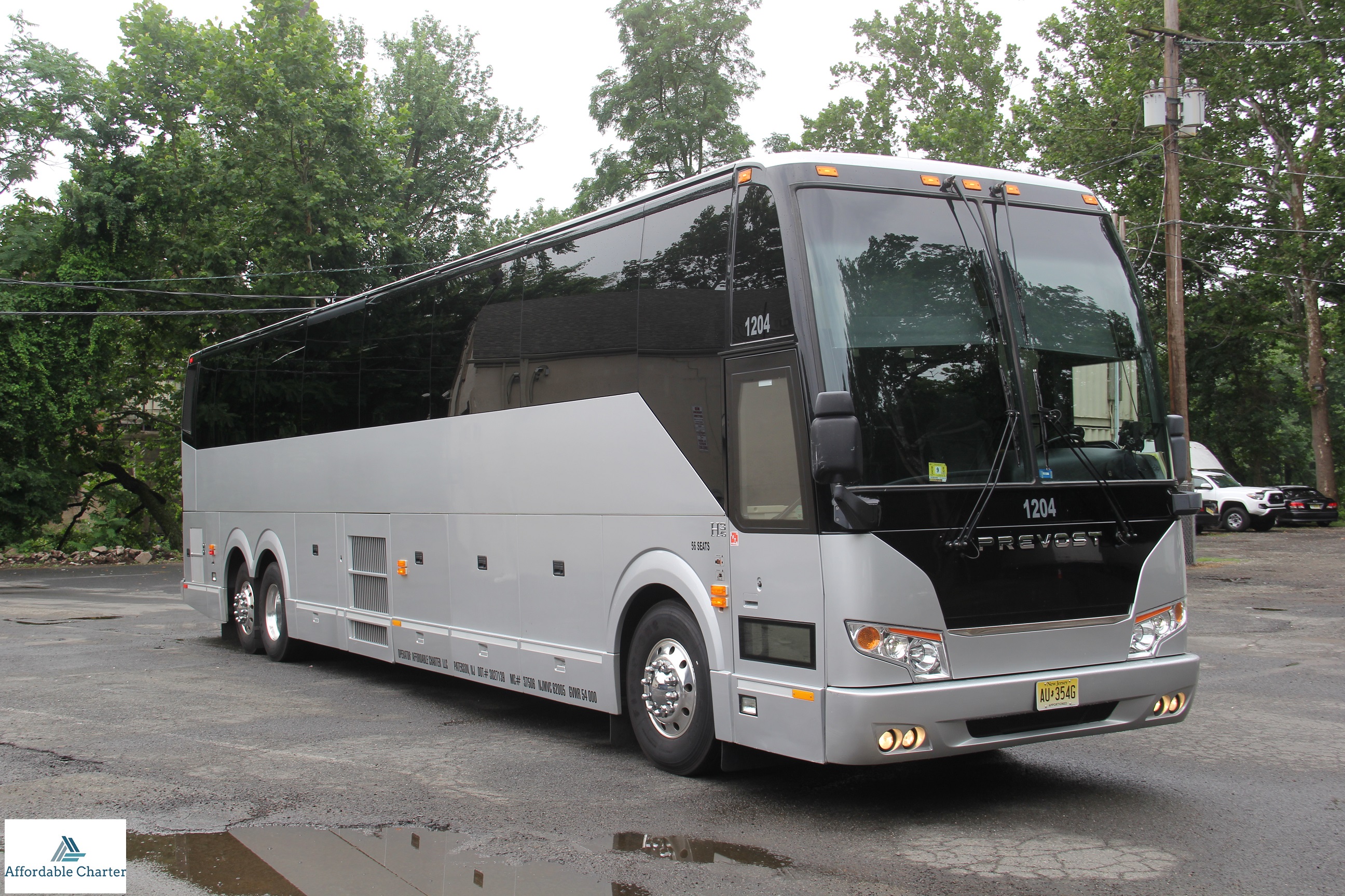 Our late model 56 passenger Volvo Prevost are ideal vehicle for a large groups and/or long distance travel. These buses equipped with multiple flat screen monitors, CD/DVD/MP3 player, power ports to charge electronic devices, WiFi, bathroom and abundant luggage storage space. All of our Prevost have 100% air suspension which allows for the smoothest ride possible.
